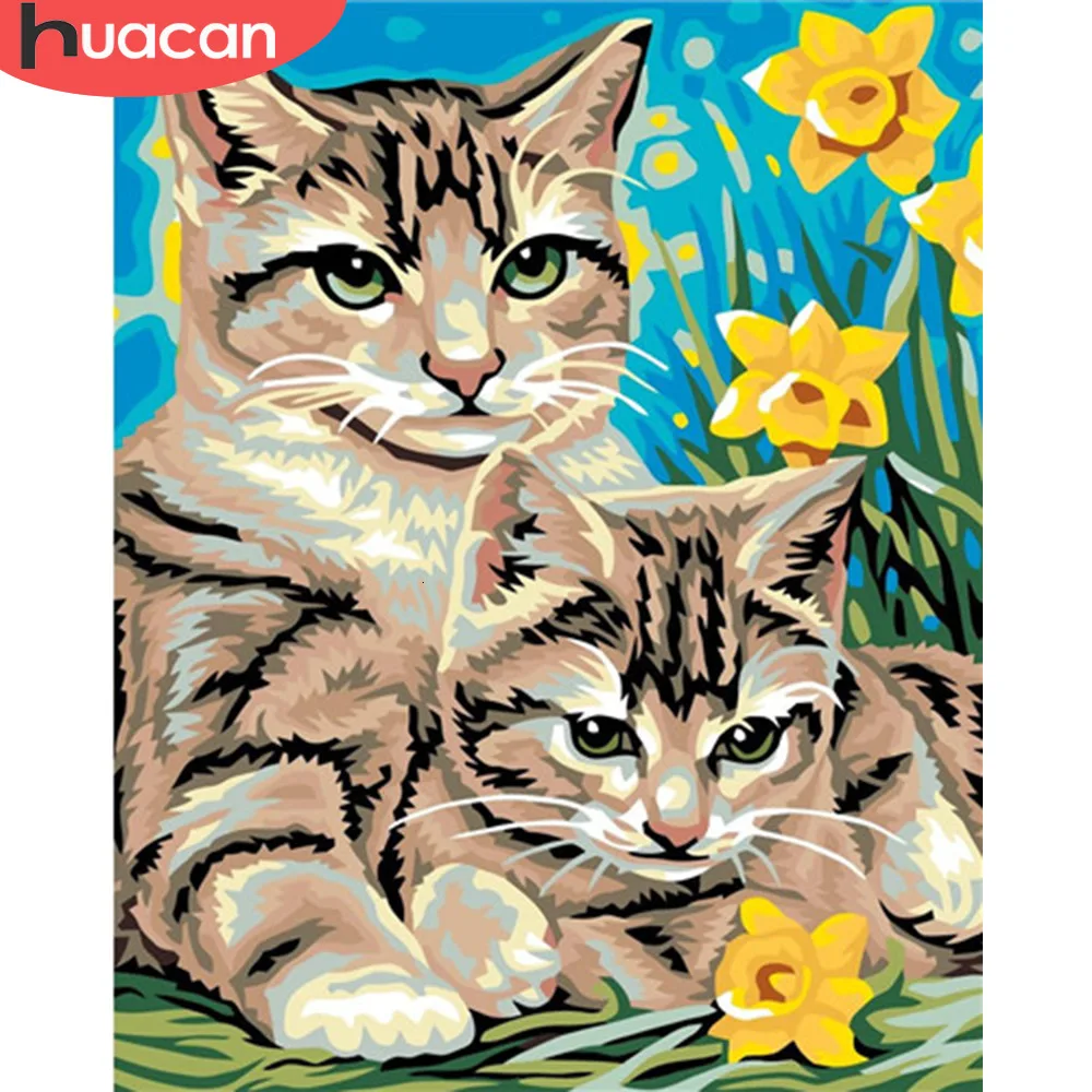 HUACAN картины по номерам кошка животные расписанные вручную наборы холст для рисования самодельная картина маслом украшение дома мультфильм...