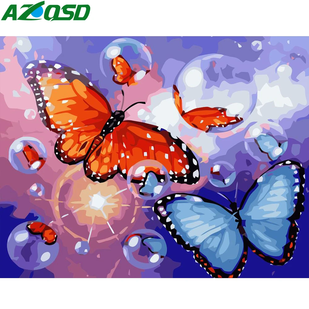 AZQSD масляная краска по номерам животные акриловая краска Сделай Сам Раскрашивание по номерам Бабочка наборы настенное искусство отточить у...