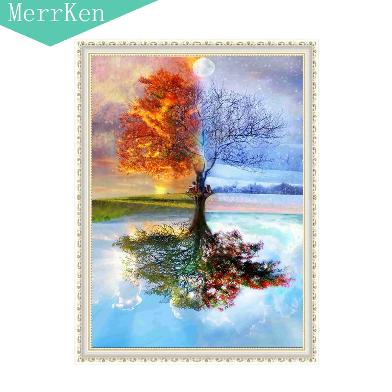 DIY алмазов картина четыре сезона деревья смолы круглый бриллиант вышивка Алмазная мозаика украшения дома картины 30*40 см