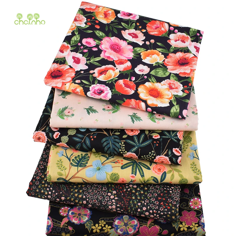 Chainho, 6 шт./лот, полночь цветы, твиловая, хлопковая ткань, Лоскутная одежда, DIY шитье и лоскутное шитье жира кварталов материал для малышей и де...