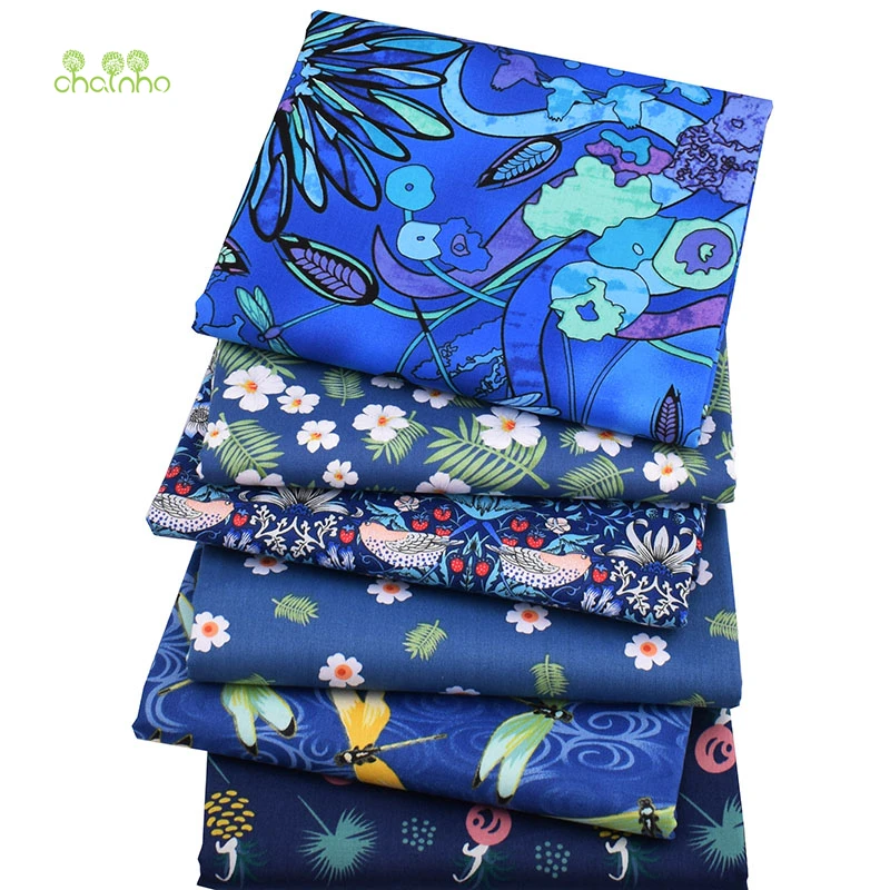 Chainho, 6 шт./лот/партия, королевские синие цветы, твиловая, хлопковая ткань, Лоскутная Ткань, DIY шитье и квилтинг Fat Quarters материал для малышей и д...