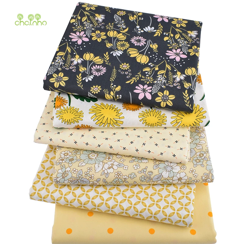 Chainho, 6 шт./партия, желтая Цветочная серия, печатная твиловая, хлопковая ткань, Лоскутная Ткань, DIY швейный материал для стеганых изделий для м...