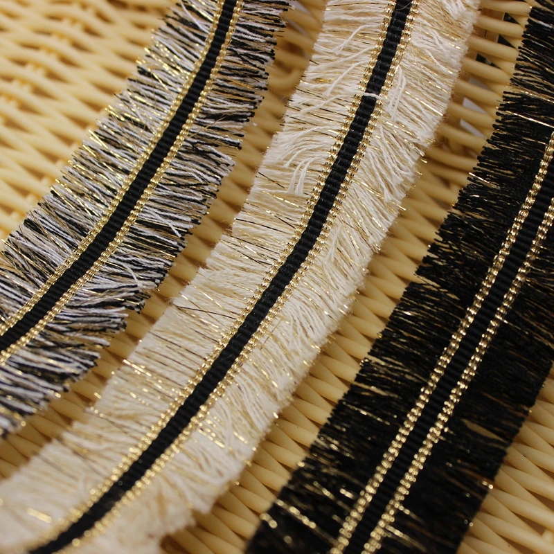 9 ярдов 3,0 см кисточкой кружево планки золотистый и черный лента DIY ремесла для Одежда Аксессуары для шитья