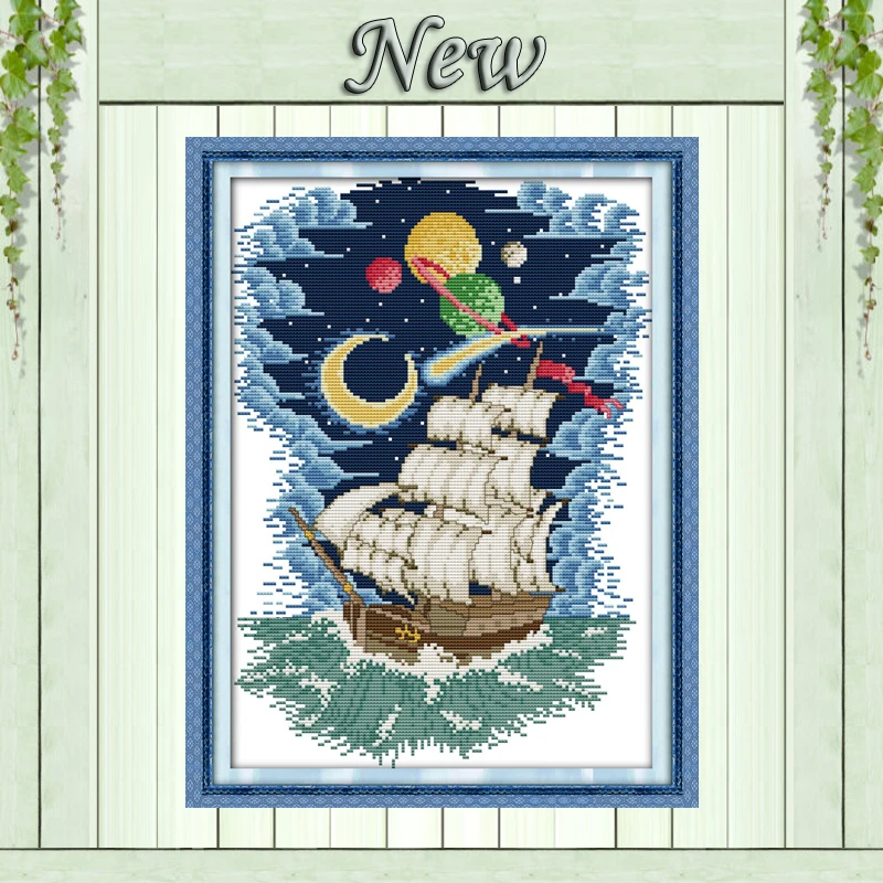 Навигации корабль море Луна Пейзаж diy живопись Счетный Печать на холсте DMC 11CT 14CT наборы для вышивки крестом вышивка рукоделие Устанавливает