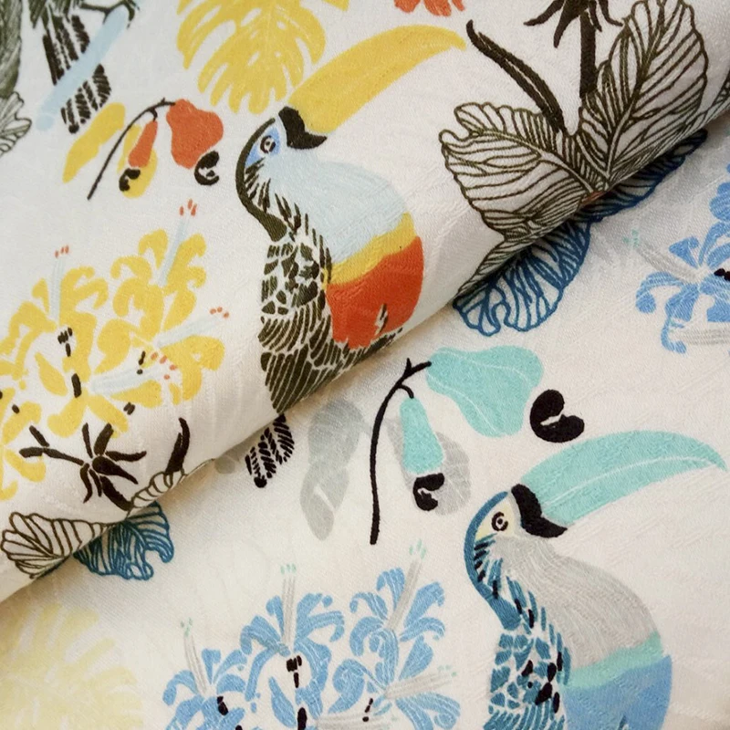 HLQON 100% хлопок сатин попугай и кокосовое дерево узор ткань для DIY швейная одежда обивка женское свадебное платье