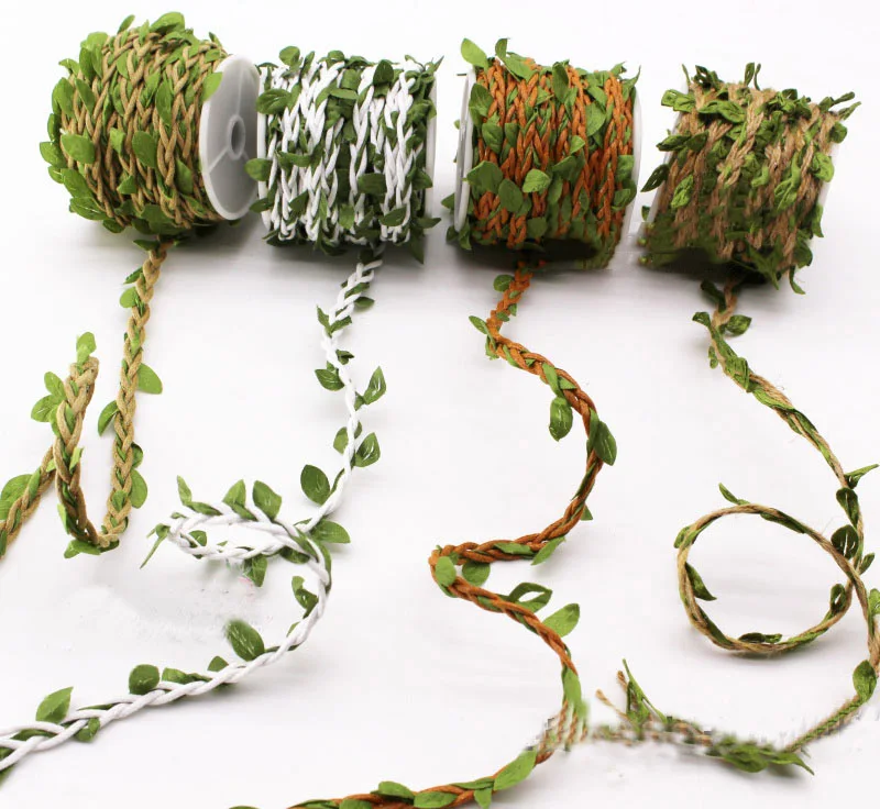 10 м пеньковая веревка зеленые листья кружево ленты украшены DIY Свадебная вечеринка домашний тканый тканые джутовая пряжа подарочная упаков...