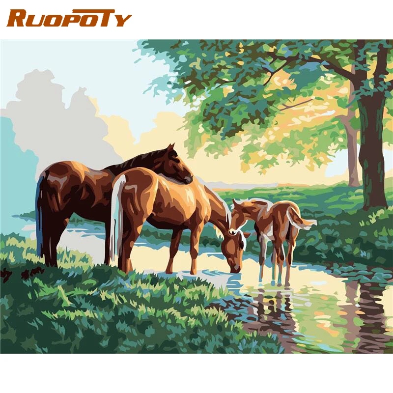 RUOPOTY рамка DIY картина по номерам лошадь животные картина по номерам расписанная вручную акриловая настенная живопись Diy подарок для дома декорации