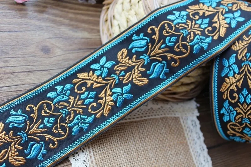 5 ярдов/партия тканые жаккардовые ленты с цветочной вышивкой синий фон черный 5,7 см ls-0013