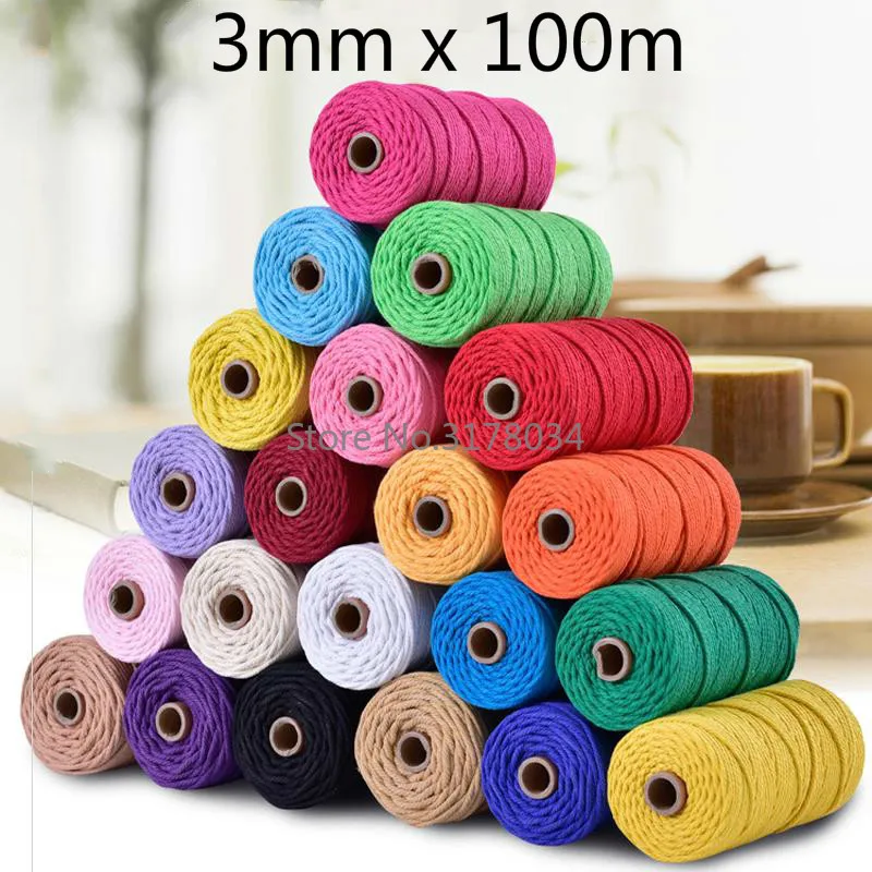 3 мм 100% хлопок шнур красочный шнур веревка бежевый витой Макраме Веревка DIY Домашний текстиль свадебный декоративный гобелен искусство 110 яр...