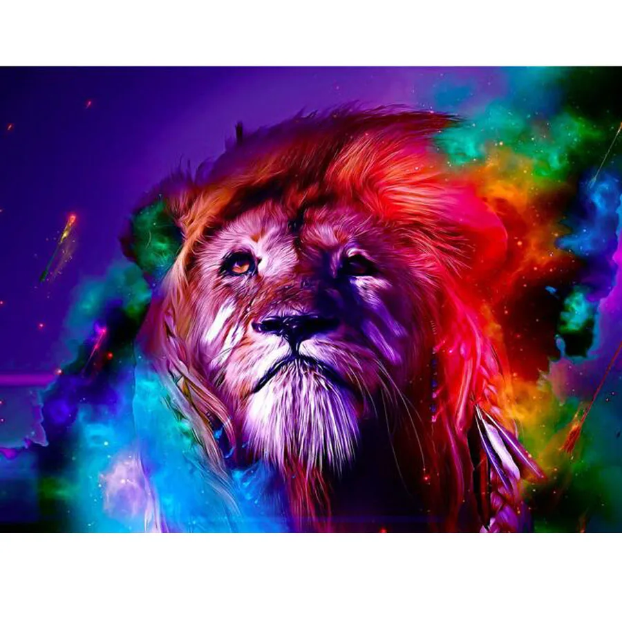 30x 40 размер DIY красочная Бриллиантовая вышивка мозаичная картина "Лев" Вышивка крестом полный горный хрусталь мозаичное украшение стены под...