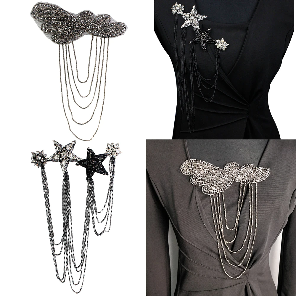 Горный хрусталь кристалл звезда патчи цепь бахрома кисточка бисером листочки цветок Epaulette DIY Пальто футболка Швейные аксессуары P2032