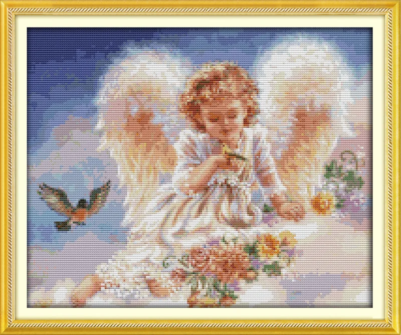 Картина с изображением маленького ангела и птиц, DMC, Счетный Китайский Набор для вышивки крестиком, Набор для вышивки крестиком