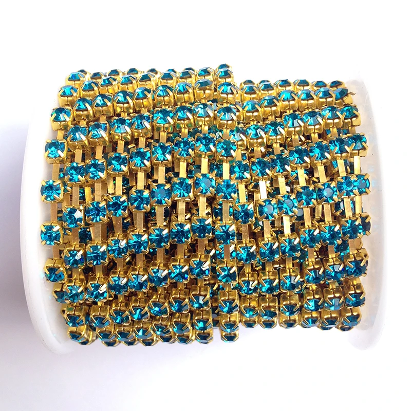 Кристалл Стразы цепи голубой циркон ss6 к SS38 10 метров/Roll Золото База DIY Костюмы Интимные аксессуары горный хрусталь цепи