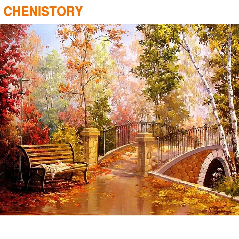 CHENISTORY Рамка DIY живопись по номерам осенний сад пейзаж Картина по номерам полотно ручной работы; рисунок для домашнего декора