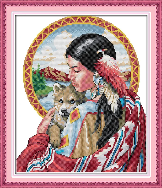 Красивые Индийские рисунок девочки на холсте DMC рассчитывал китайской вышивки крестом Наборы печатное набор крестиком вышивка рукоделие
