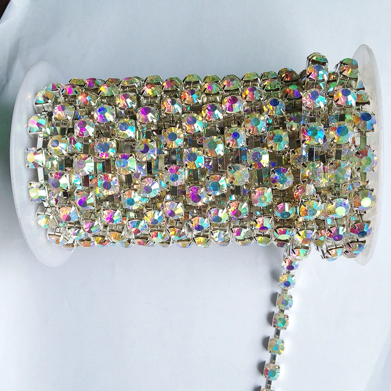 10 метров/рулон Crystal AB цепи стразами ss6 к SS38 Серебряный базы новый стиль DIY красоты торжественное платье аксессуары горный хрусталь цепи