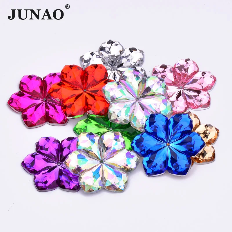 JUNAO 28 мм Швейные Mix Цвет Цветочные Стразы аппликация шить на большой Размеры акриловые камни и Хрустальная с плоской стороной страз для укра...