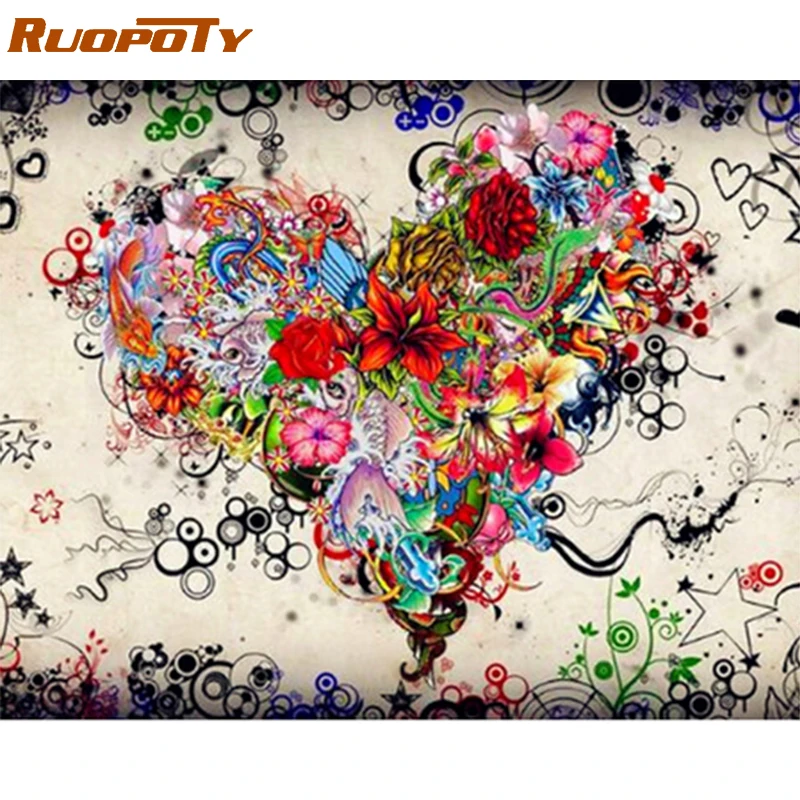 RUOPOTY рамка Diy картина по номерам Набор Сердце пейзаж Ручная роспись Картина маслом Настенная картина Diy подарок для украшения дома