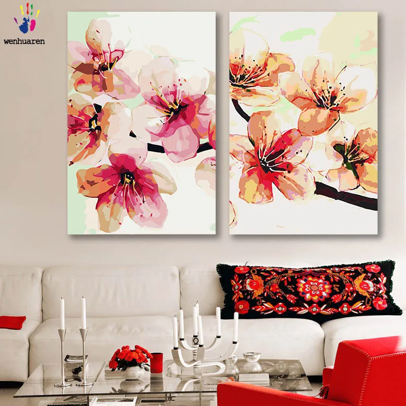 DIY цветные картины по номерам с цветами Персиковый Цветок Картина Рисунок Живопись по номерам рамка домашний декор две части