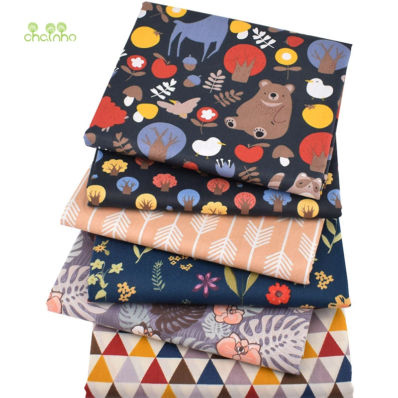 Chainho, 6 шт./лот, темно цвет, печатные твиловая, хлопковая ткань, Лоскутная Ткань, DIY Вышивание и квилтинга жира четверти материал для ребенка