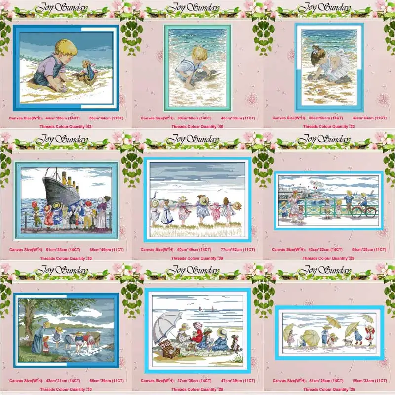 Мальчик девочка играть на пляже Счетный 11CT 14CT набор крестиков DIY DMC Набор для вышивания крестиком рукоделие домашний декор