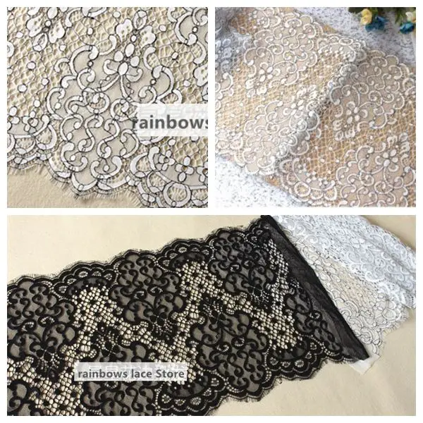 3 м/лот, 35 см в ширину, черная/Белая французская кружевная отделка Шантильи, кружевная отделка с двойным зубчатым краем для ресниц, цветочное украшение для шитья
