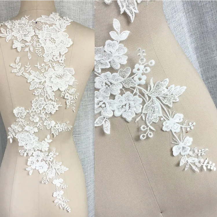 3 шт роскошное вышитое бисером кружево воротник цветок заплатка DIY свадебное платье декольте цветок RS1320