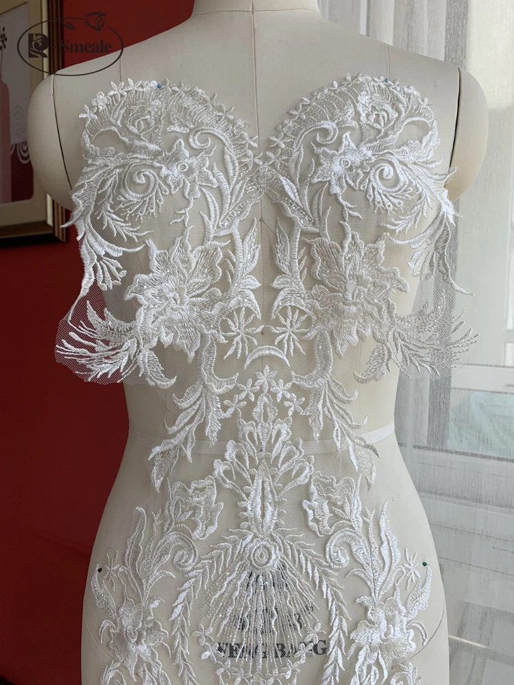 Слоновой кости Свадебное кружево Аппликация Большая передняя грудь отделка патч блестками вышивка сердце цветок RS2511