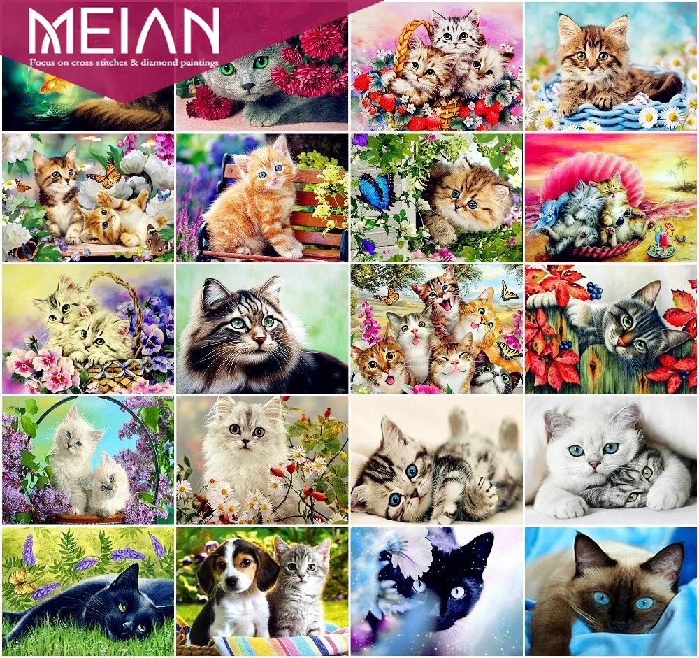 MEIAN Алмазная мозаика для животных, кошка, алмазная картина, животное, горный хрусталь, сделай сам, полностью квадратная круглая Алмазная вышивка, украшение для дома, подарок