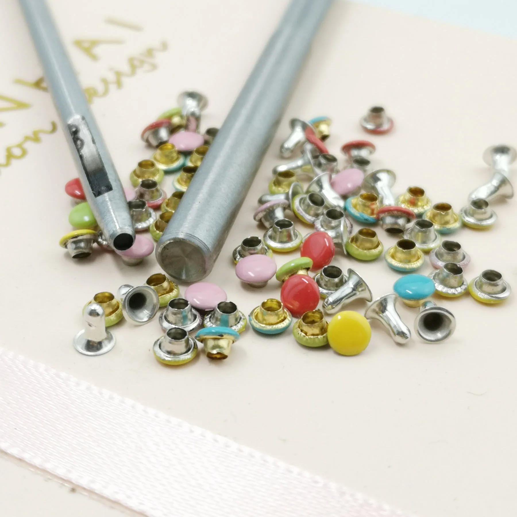 4 мм аксессуары для одежды куклы мини заклепки Супер Мини ногтей заклепки в форме гриба 5 цветов микс 100 шт заклепки с установочным инструмен...