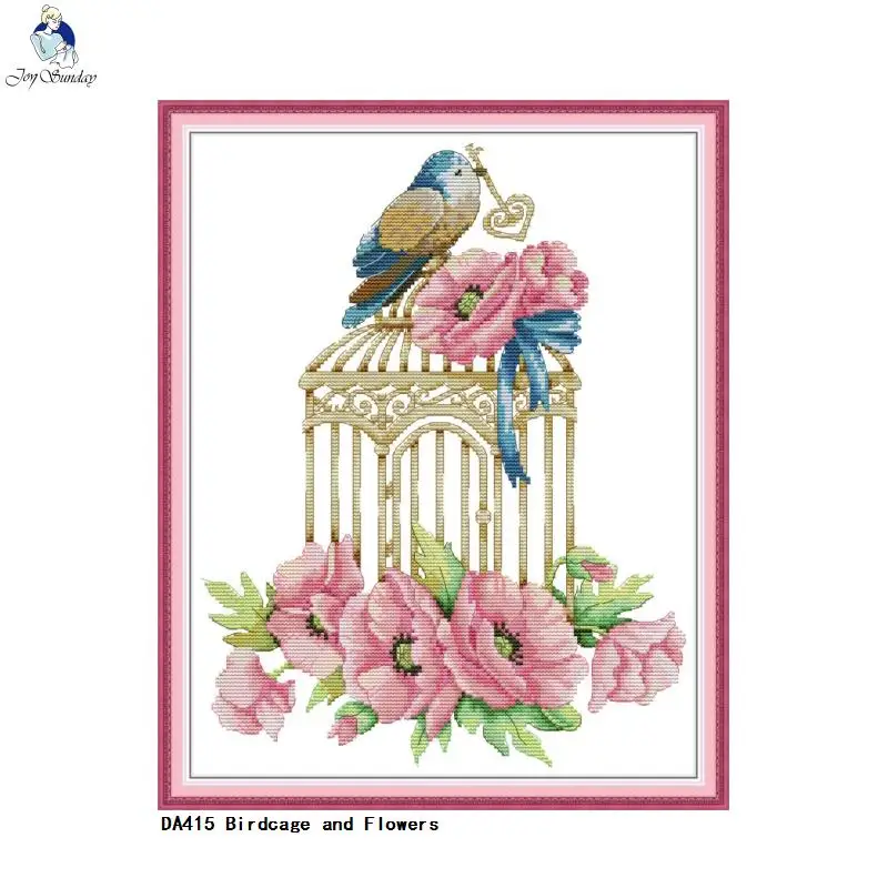 Joy Sunday птичья клетка и цветы картины Аида наборы для вышивки крестиком DMC 11CT 14CT Набор для вышивания оптом DIY рукоделие