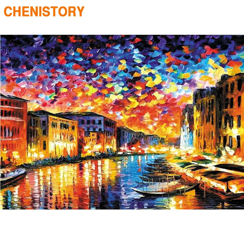 CHENISTORY рамка Венеция DIY картина по номерам Набор для создания пейзажа краска по номерам Холст Картина Настенная картина для домашнего декора