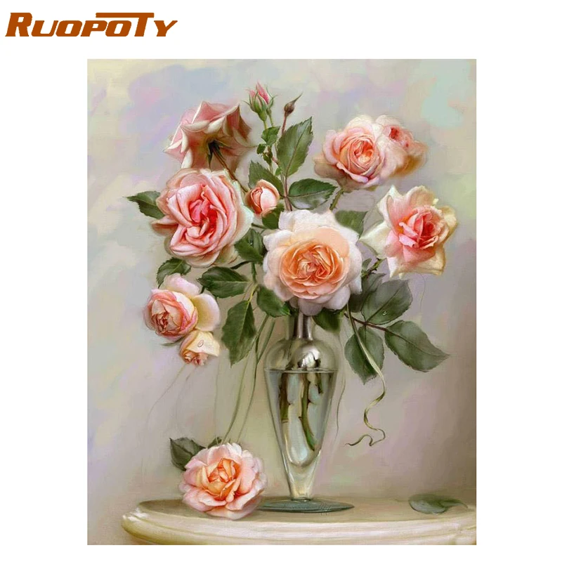 RUOPOTY рамка розовые цветы картина по номерам набор современное настенное Искусство Diy живопись по номерам акриловый холст для домашнего декора художественное оформление