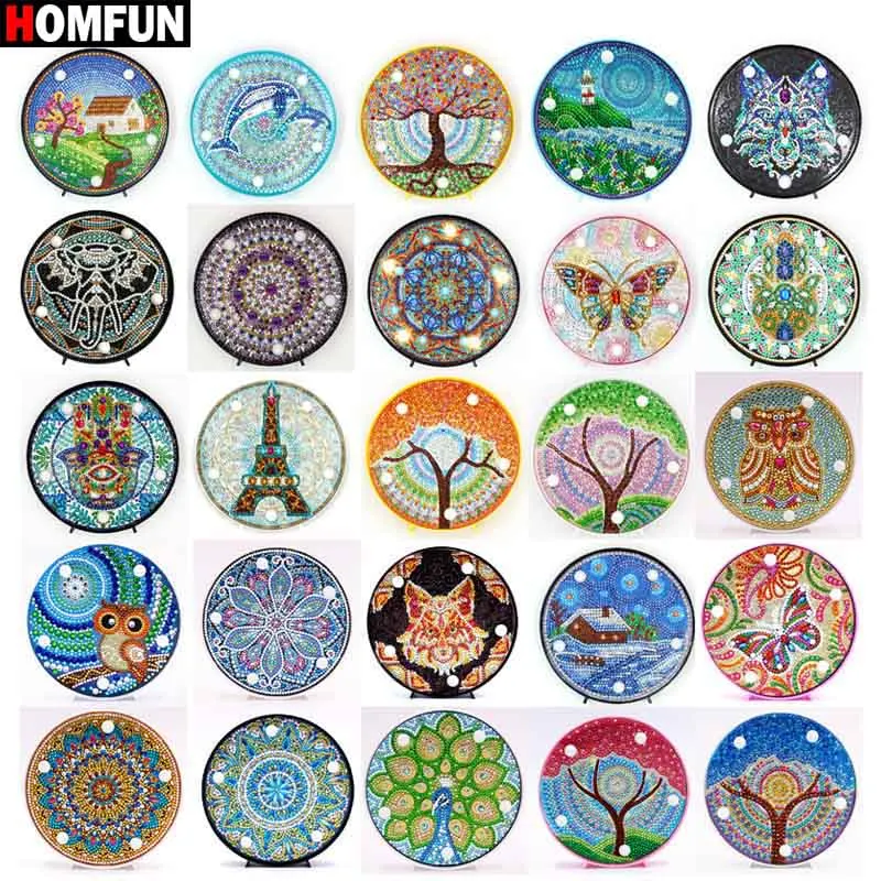 HOMFUN алмазная живопись светодиодный светильник Мандала 5D алмазная вышивка пейзаж Стразы DIY Алмазный подарок на Рождество, Хэллоуин