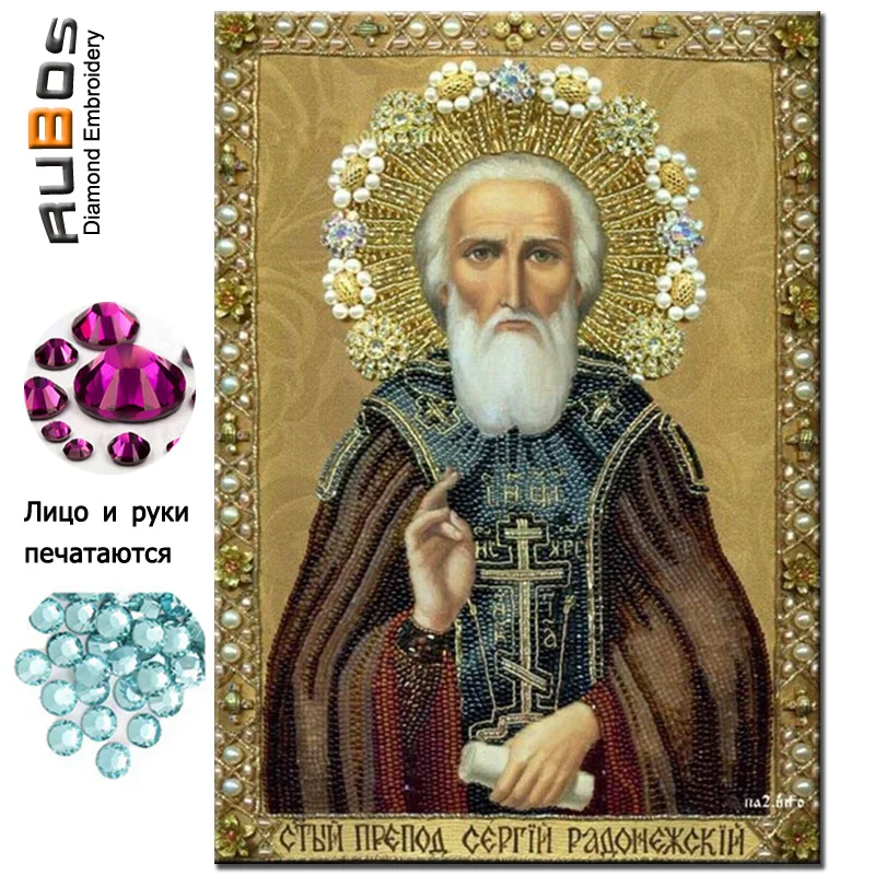 Рубос значок Святой Сергий Радонежский алмазная, мозаичная, религиозная DIY 5D Diamond вышивка классический Стразы для рукоделия бусина дрель пр...