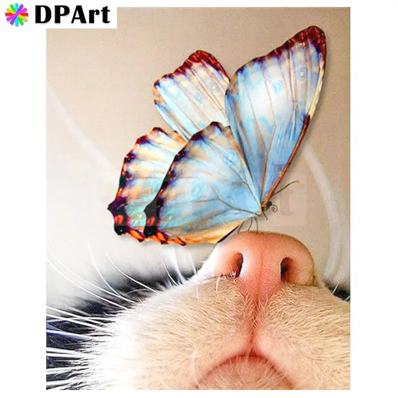 Алмазная картина полностью квадратная/круглая дрель кошки и бабочки 5D Daimond Вышивка крестом Набор Мозаика Стразы Zou076