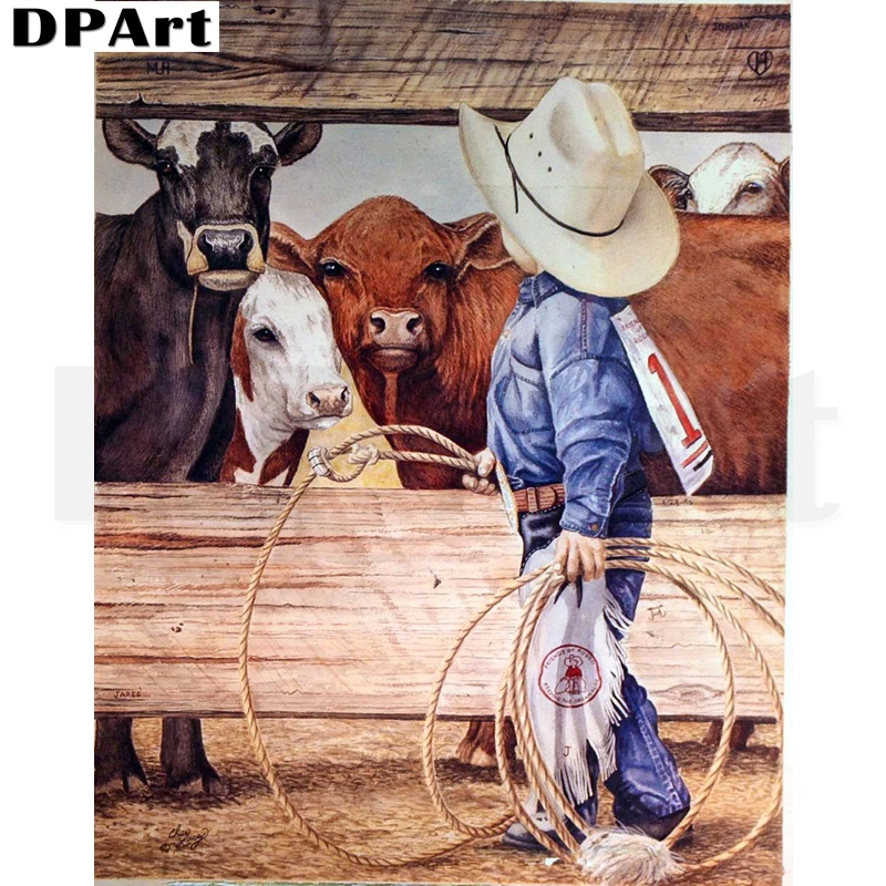 Алмазная картина Полная площадь/круглая дрель ковбой крупного рогатого скота 5D алмазная вышивка с вышивкой из страз набор стежков Мозаика ...