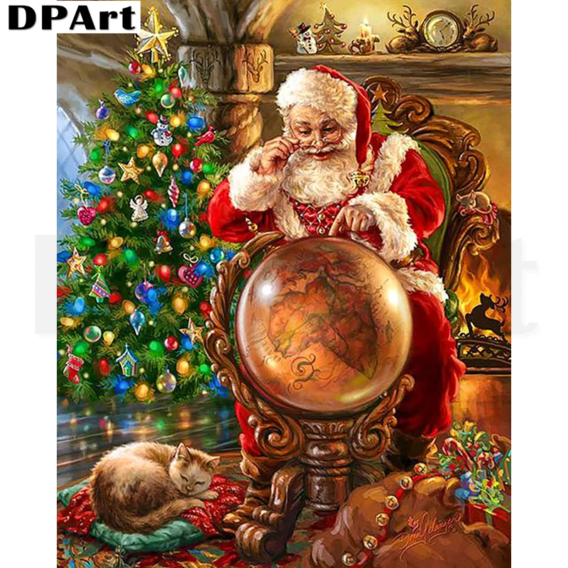 Diamond картина Полная площадь/круглый дрель миру и кот Санта Клауса 5D Алмазная вышивка вышивки крестом горный хрусталь Zou318