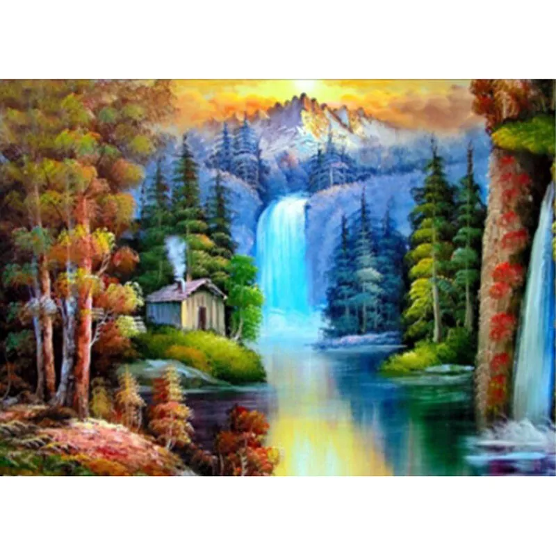 5D DIY квадратный алмаз вышивка лес водопады круглый Алмазная мозаика вышивка крестиком дом декоративная живопись пейзаж v1149