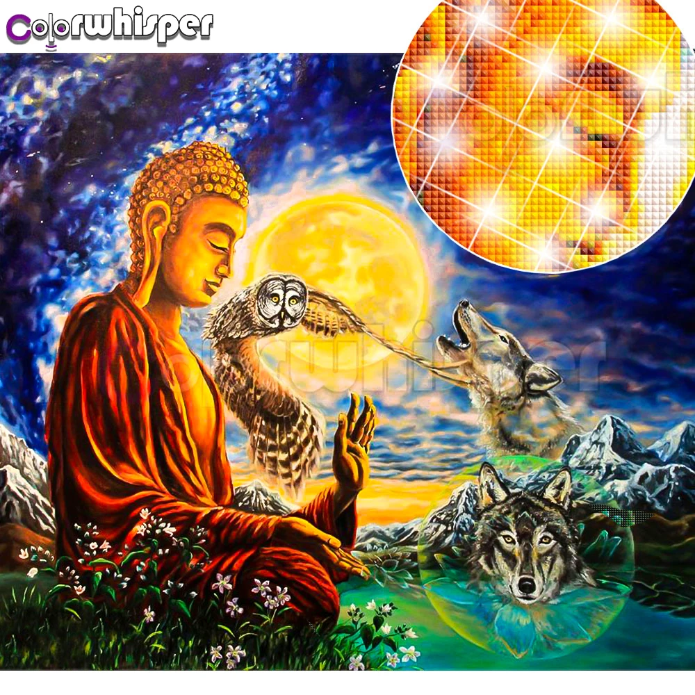 Diamond картина Полная площадь/круглый дрель буддистская религия Звездное Небо волк Сова Алмазная вышивка мозаика крестом картина 589DP