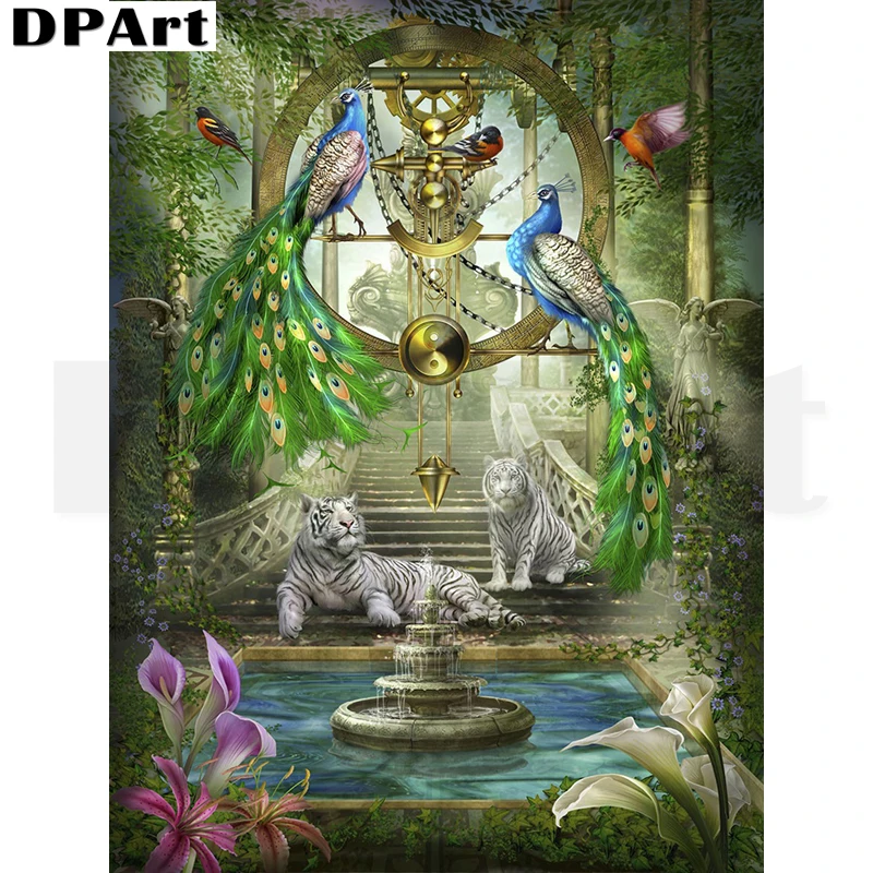 Diamond картина Полная площадь/круглый белые Тигры Павлин 5D кристальная Вышивка крестом Комплект Мозаика горный хрусталь Аватар T122