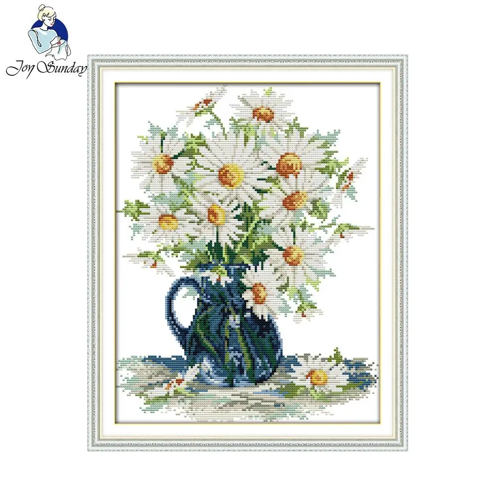 Радость воскресенье в цветочном стиле Daisy ваза вышивка крестиком простых моделей комплекты штампованные ткань 14ct и 11ct начинающих DIY Craft Пода...