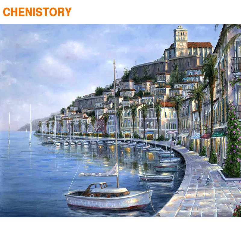 CHENISTORY Frame Coastal City Paint по номерам набор пейзаж Сделай Сам картина по номерам Современная Настенная живопись холст акриловая краска художественное оформление
