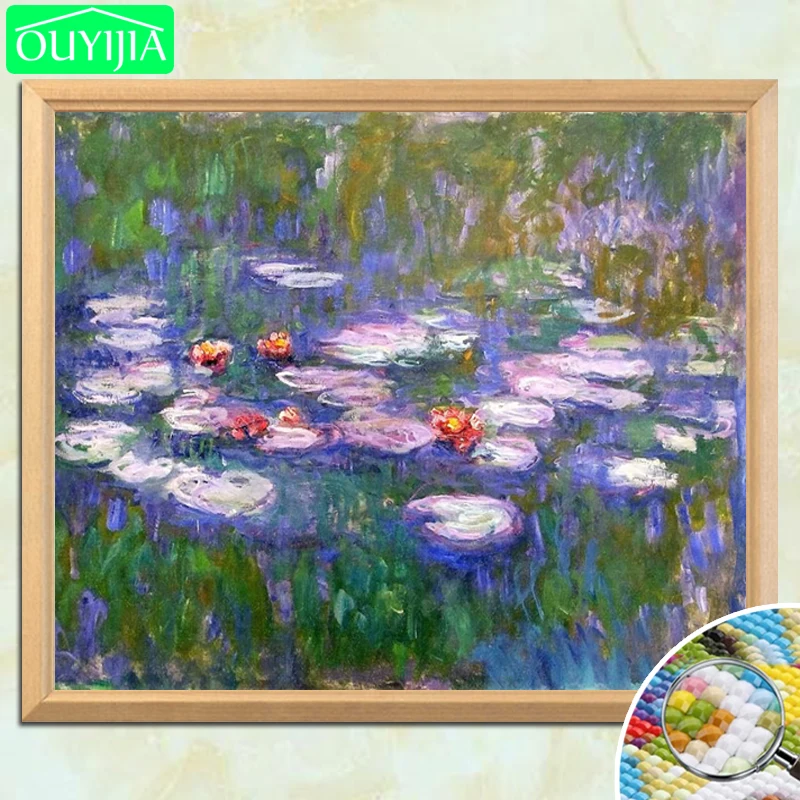 Клода монета знаменитая картина "Водяные лилии" 5D DIY Алмазная картина полная квадратная Алмазная вышивка Стразы Мозаика Декор пос