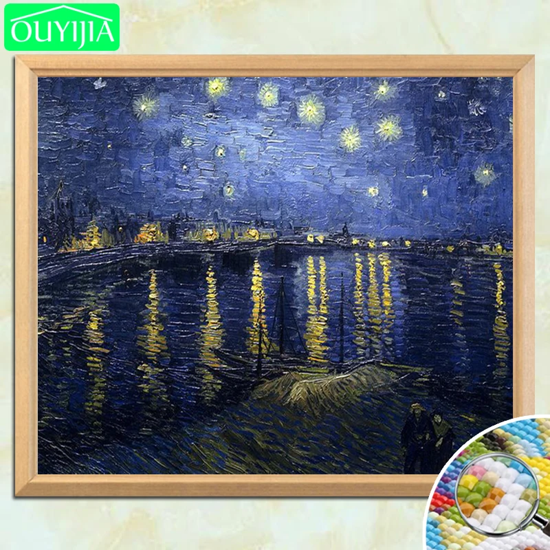 Ван Гог знаменитая картина "Звездная ночь над Роном" 5D DIY Алмазная картина полный квадратный Стразы для вышивки Картина