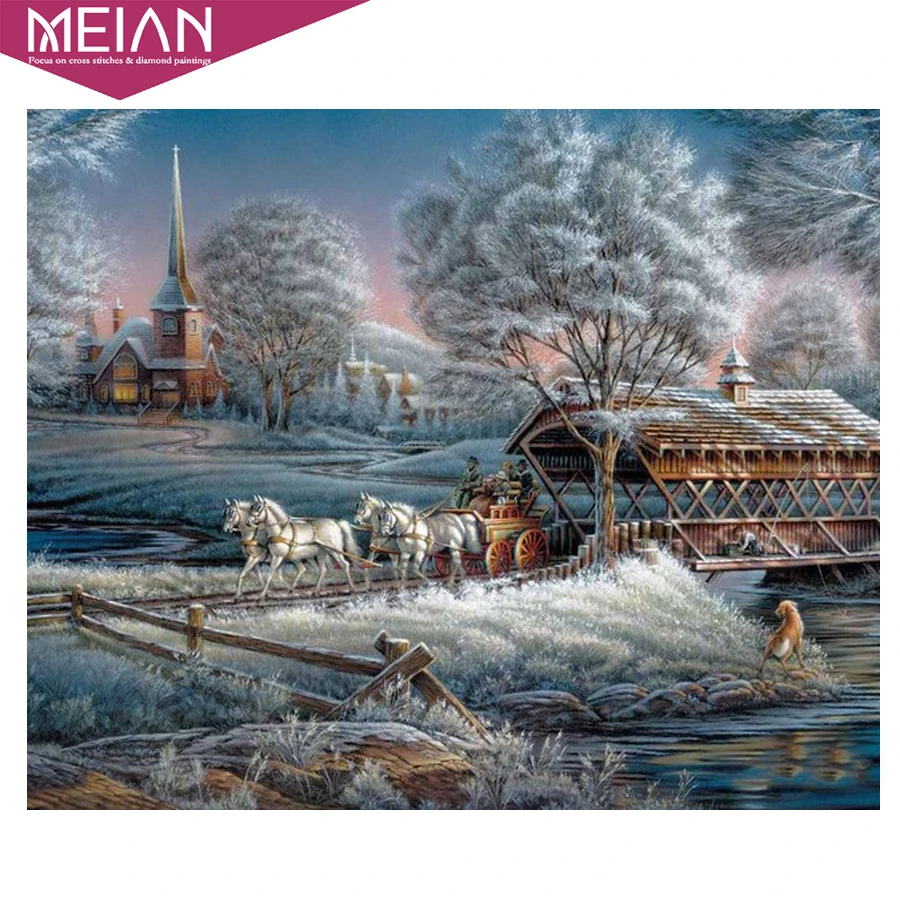 Зима 2020 MEIAN полная Алмазная вышивка diy Алмазная Картина Вышивка крестом снег пейзаж мозаика узор Стразы