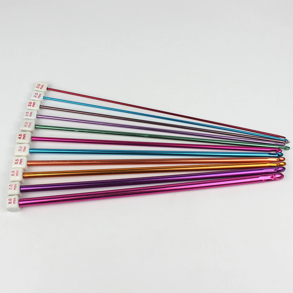 Горячая продажа 11 шт 10,6 "разноцветный алюминиевый TUNISIAN AFGHAN вязальный крючок набор иголок 2-8 мм