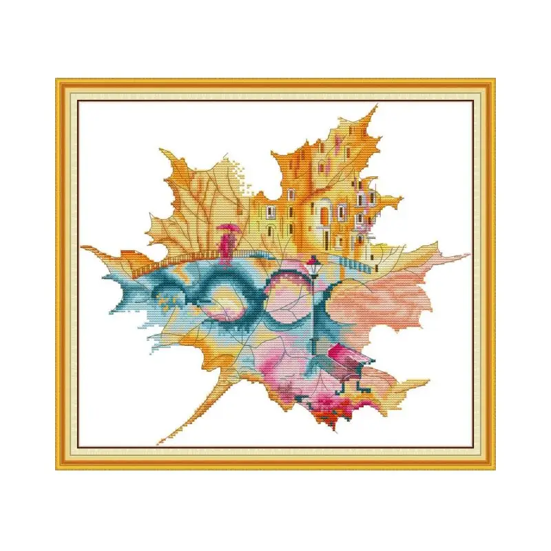 Город в виде кленового листа Вышивка крестом с принтом узора на холсте 14ct 11ct рукоделие DMC Сделай Сам Вышивка крестом комплект с вышивкой ремесла