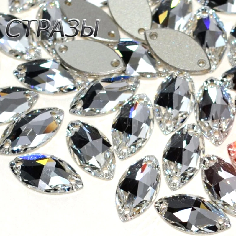 Прозрачный 3223 Navette, все размеры, стразы с плоской задней поверхностью, Пришивные Кристальные Стразы с двумя отверстиями, для украшения свадебной одежды