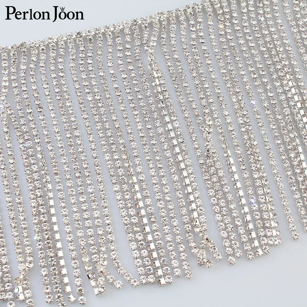 1 ярд Длинная кисточка с отделкой кристаллами, стразами серебряная кристаллическая декоративная металлическая цепочка аксессуары для одеж...